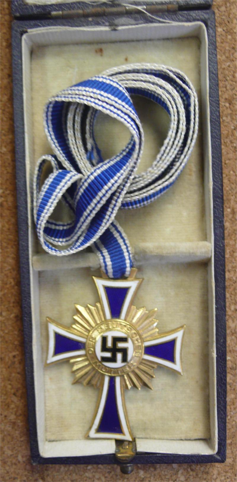 About a Gold mothers cross holder. "MUTTER BERTA" by Rudolf Haas. Cased medal is in fine condition, although the case shows minor signs of wear, but no damage.