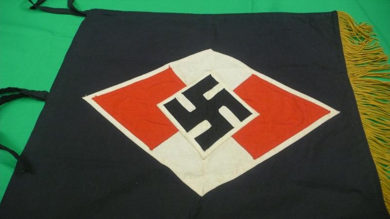 In near mint condition, no damage double sided and multi constructed. Colours are still very strong, banner measures 45 cm x 46 plus 6 cm gold coloured cotton/rayon tassle along bottom edge. Also worth noting banner still retains its original ties.